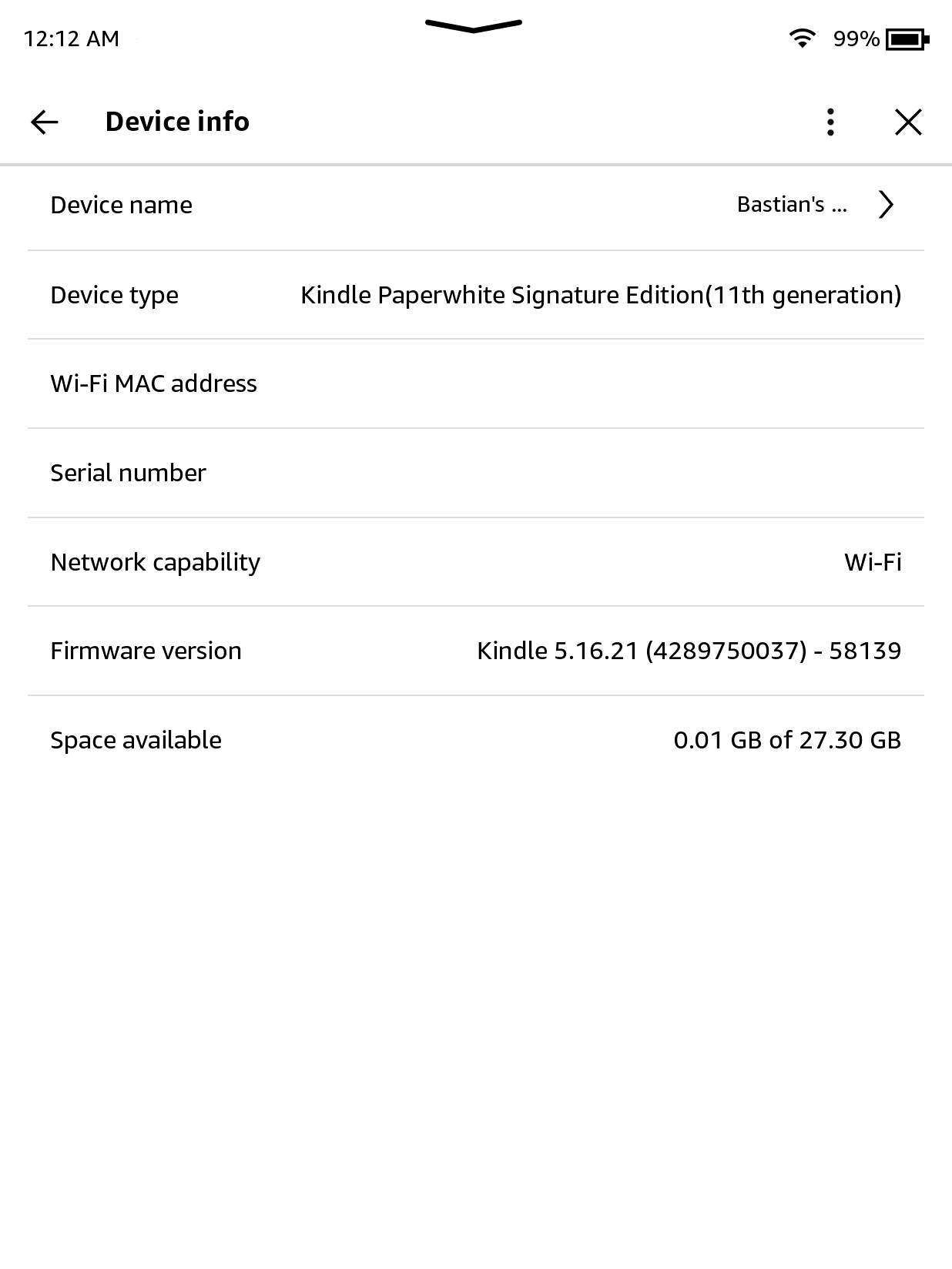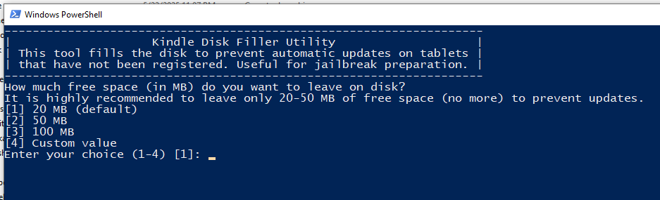 You can use a simple script to fill your Kindle’s storage with dummy files, leaving only a small amount of free space. This script is available in the Kindle-Filler-Disk GitHub repository along with other useful scripts for Windows, macOS, and Linux.